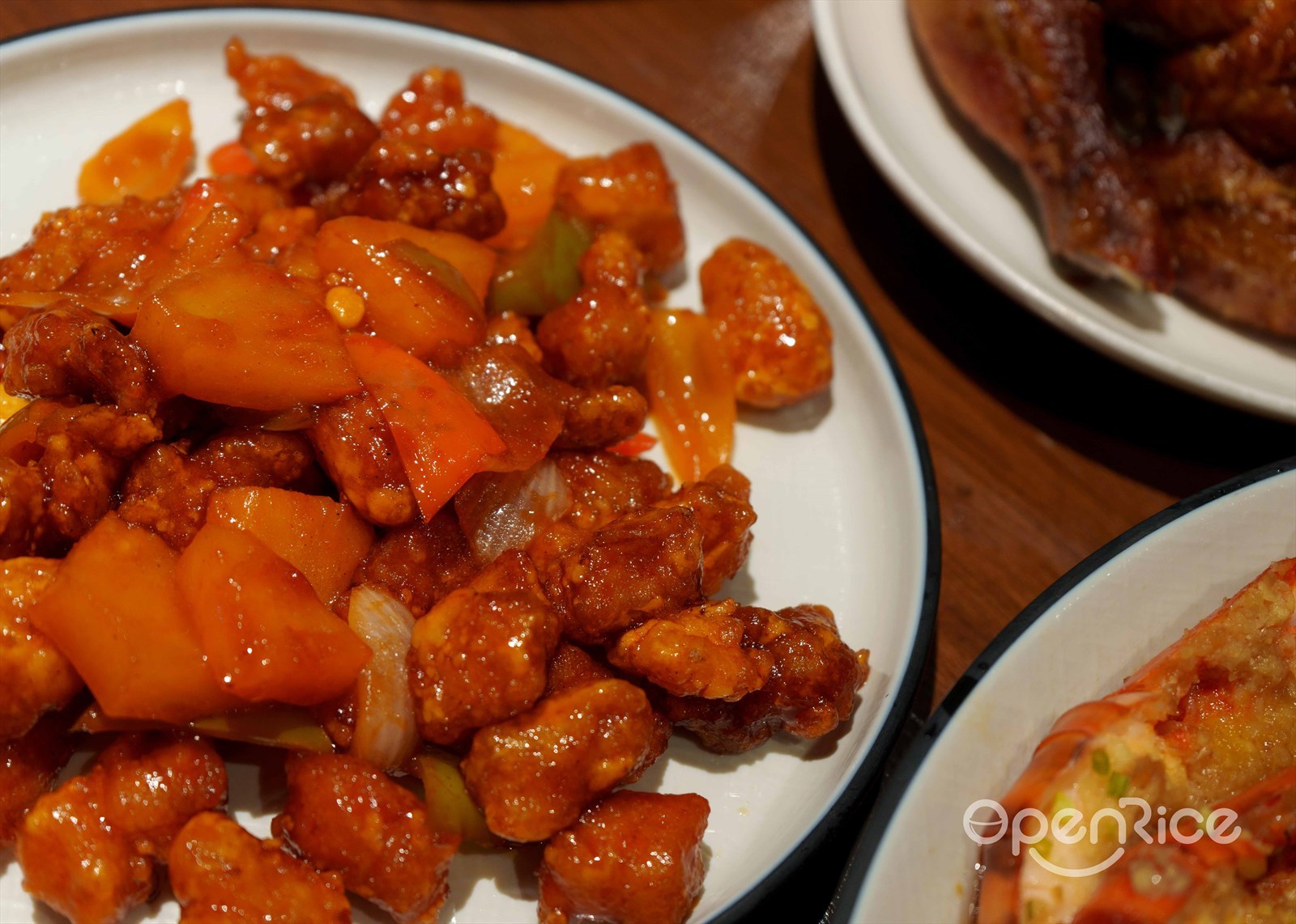 Classic Cantonese preparation featuring tender pork pieces in a perfectly balanced tangy-sweet sauce. The bright red sauce coats each morsel while bell peppers add freshness and crunch. This beloved dish delivers familiar flavors that never miss.
