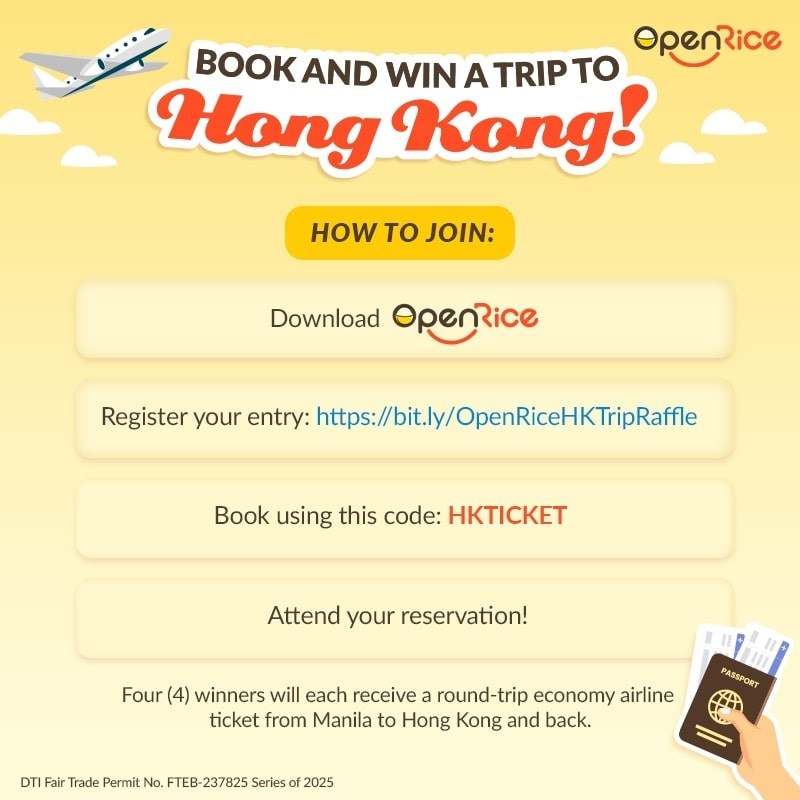 Prizes must be claimed within 60 days from receipt of the registered notice. Unclaimed prizes will be forfeited in favor of OpenRice, with DTI approval.