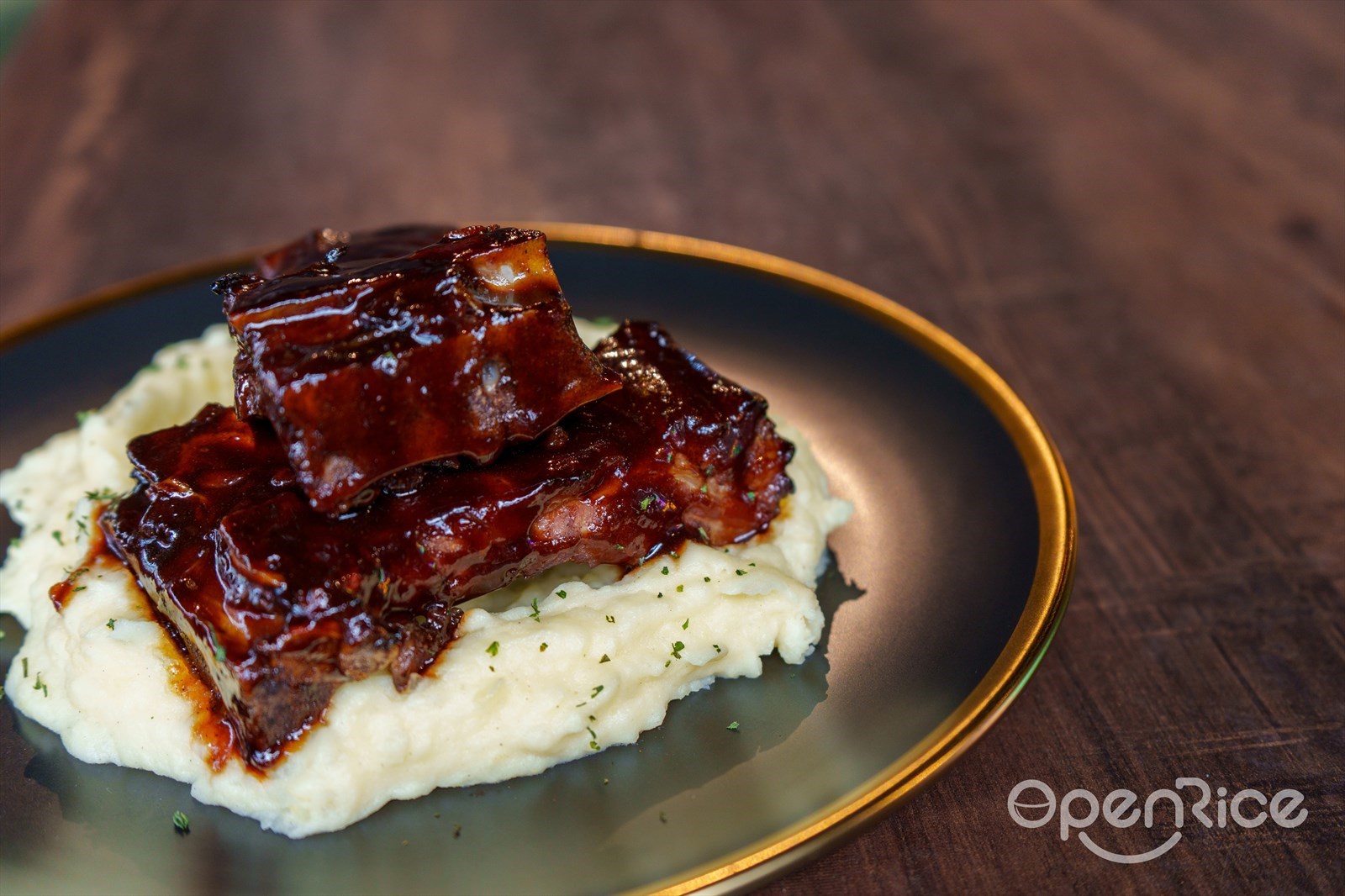 Fall-off-the-bone pork ribs slow-cooked to perfection, glazed in a bourbon BBQ sauce, and paired with buttery smoked mash. It is truly comfort food at its finest.