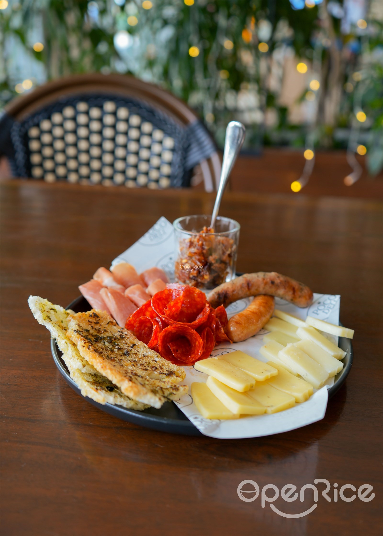 Now this is an exquisite experience on a board. The thoughtfully curated selection features perfectly chewy prosciutto, precisely salted pepperoni, sausages, and complementary cheeses. Accompanied by crusty bread that provides the ideal textural counterpoint, this offering invites leisurely enjoyment and shared conversation.