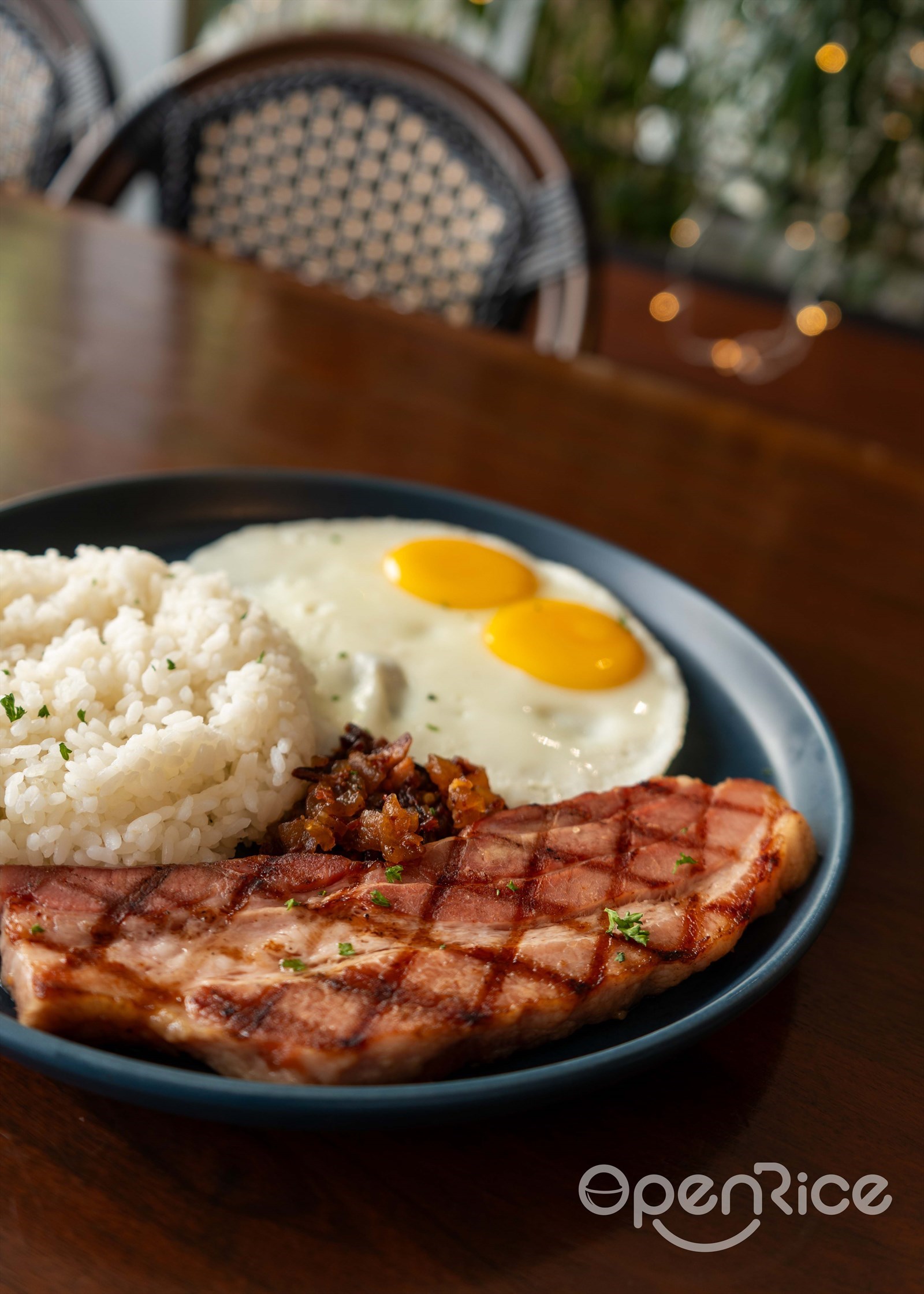 A signature offering that has earned its reputation. This extraordinary bacon undergoes an 8-hour curing and smoking process, resulting in meat that achieves the perfect harmony of tenderness and rich, complex flavor. Served alongside rice and perfectly prepared eggs, it represents comfort food at its finest.