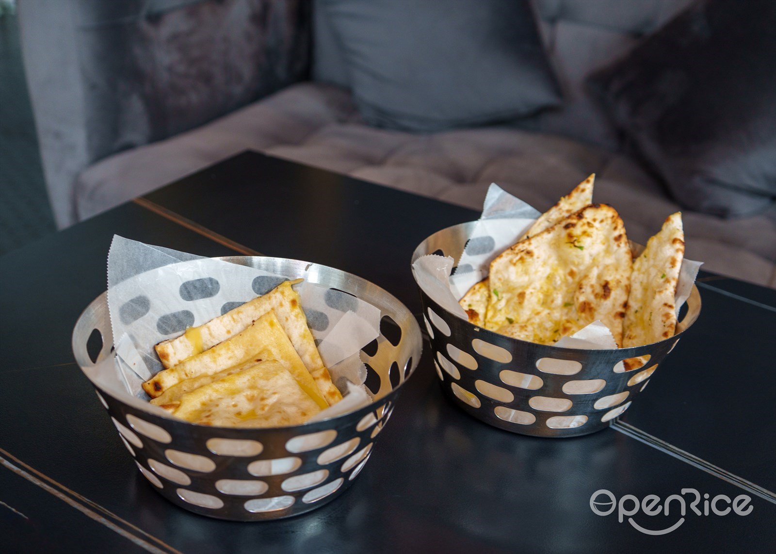 Cheese Naan (₱289) and aromatic Garlic Naan (₱249)