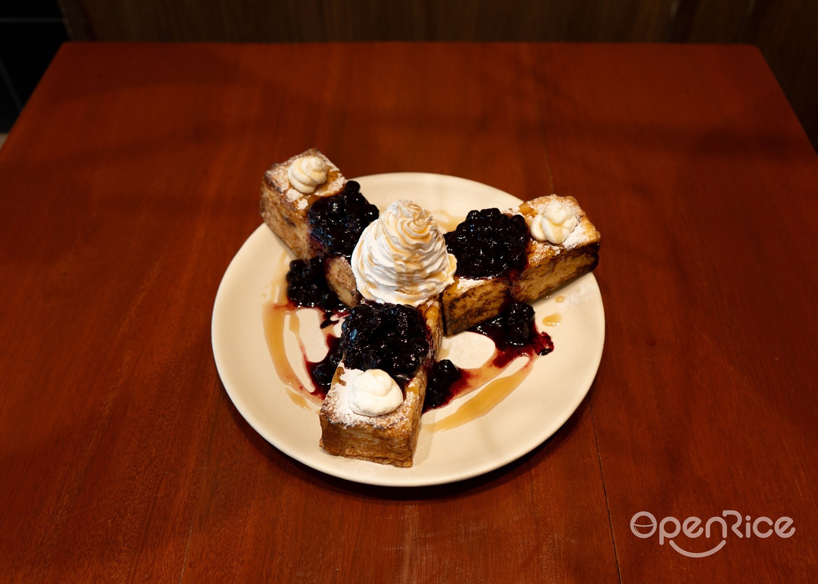Brioche French toast is a warm hug on a plate, topped with blueberries, ricotta cheese, whipped cream, and maple syrup. It's the kind of breakfast that makes you want to wake up early – and trust us, that's saying something.