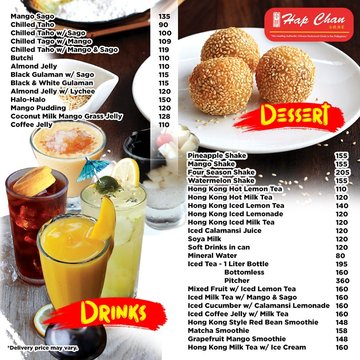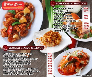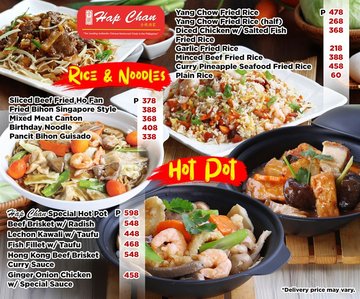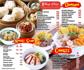 Wanton Noodle / Shrimp Siomai / Taiwan Pechay with Garlic / Sweet & Sour Pork / Yang Chow Fried Rice / Hakaw