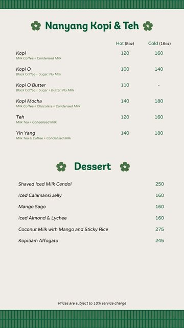 Singaporean Fishball Soup / Honey Ginger Beef / Chicken & Mushroom Claypot Rice / Kopi O Butter / Shaved Iced Milk Cendol