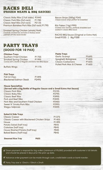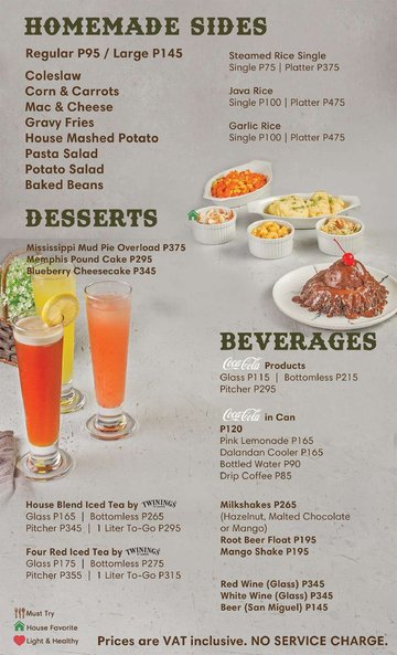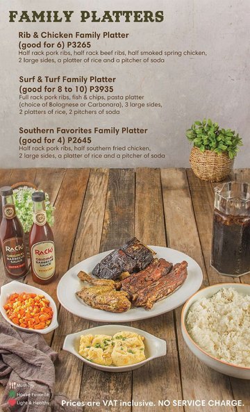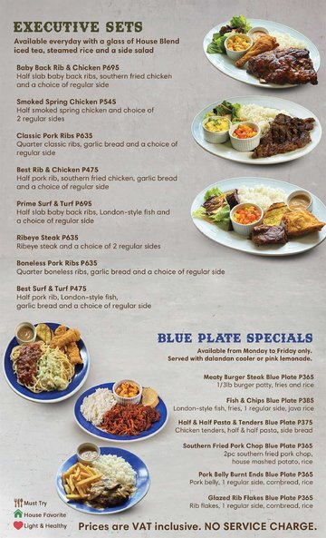 Baby Back Rib & Chicken / Clam Chowder / Classic Baby Ribs / Ribeye Steak / Best Surf & Turf / Blackened Salmon Steak