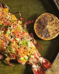 Salmon tartare on nachos