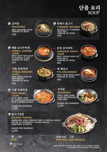 Deungshim / Galbi Kkotsal / Saeng Galbi / Yangnyeom Galbi / LA Galbi / Masil Bulgogi