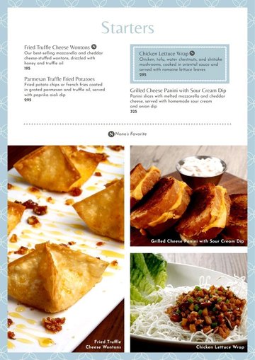 Classic Bolognese (Kid's Menu) / French Onion Soup / Fried Truffle Cheese Wontons / Waffles Benedict